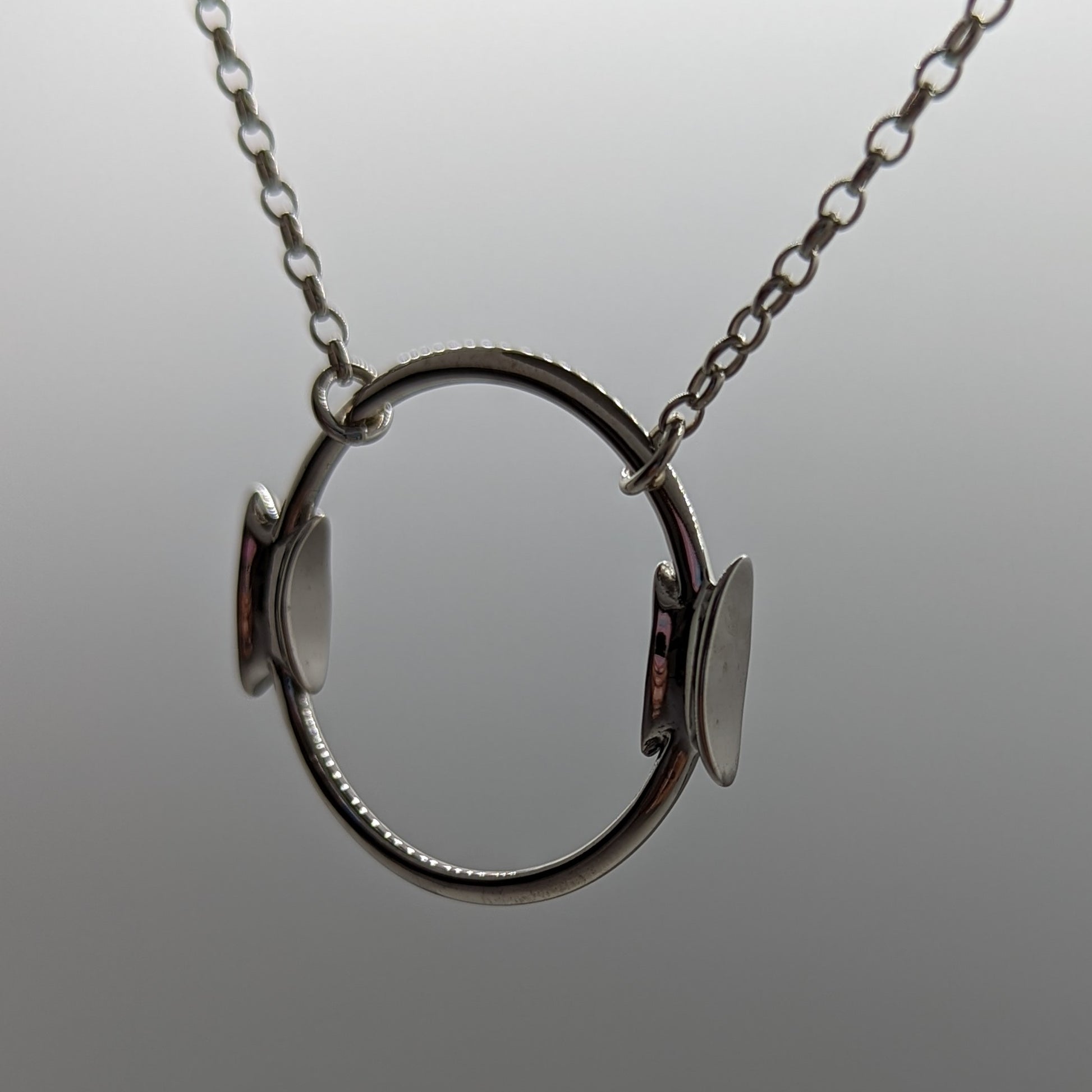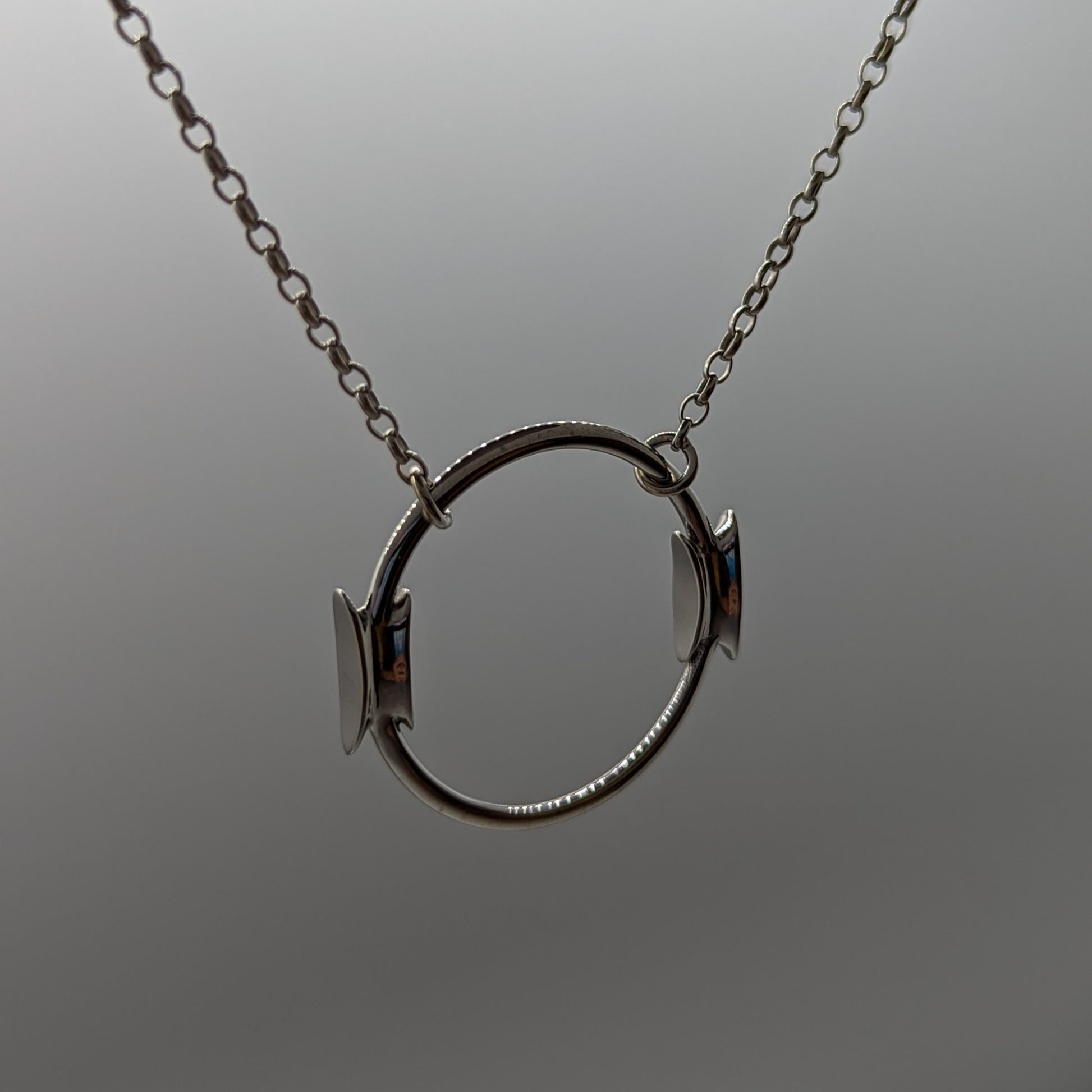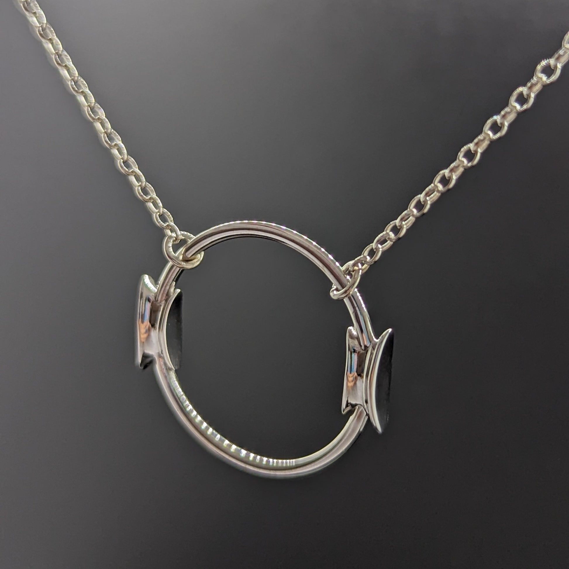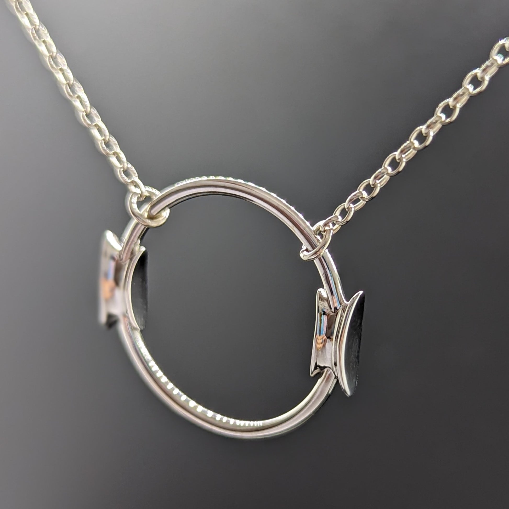 Rhodium plated Pilates Ring necklace on 15" chain with 3" extension